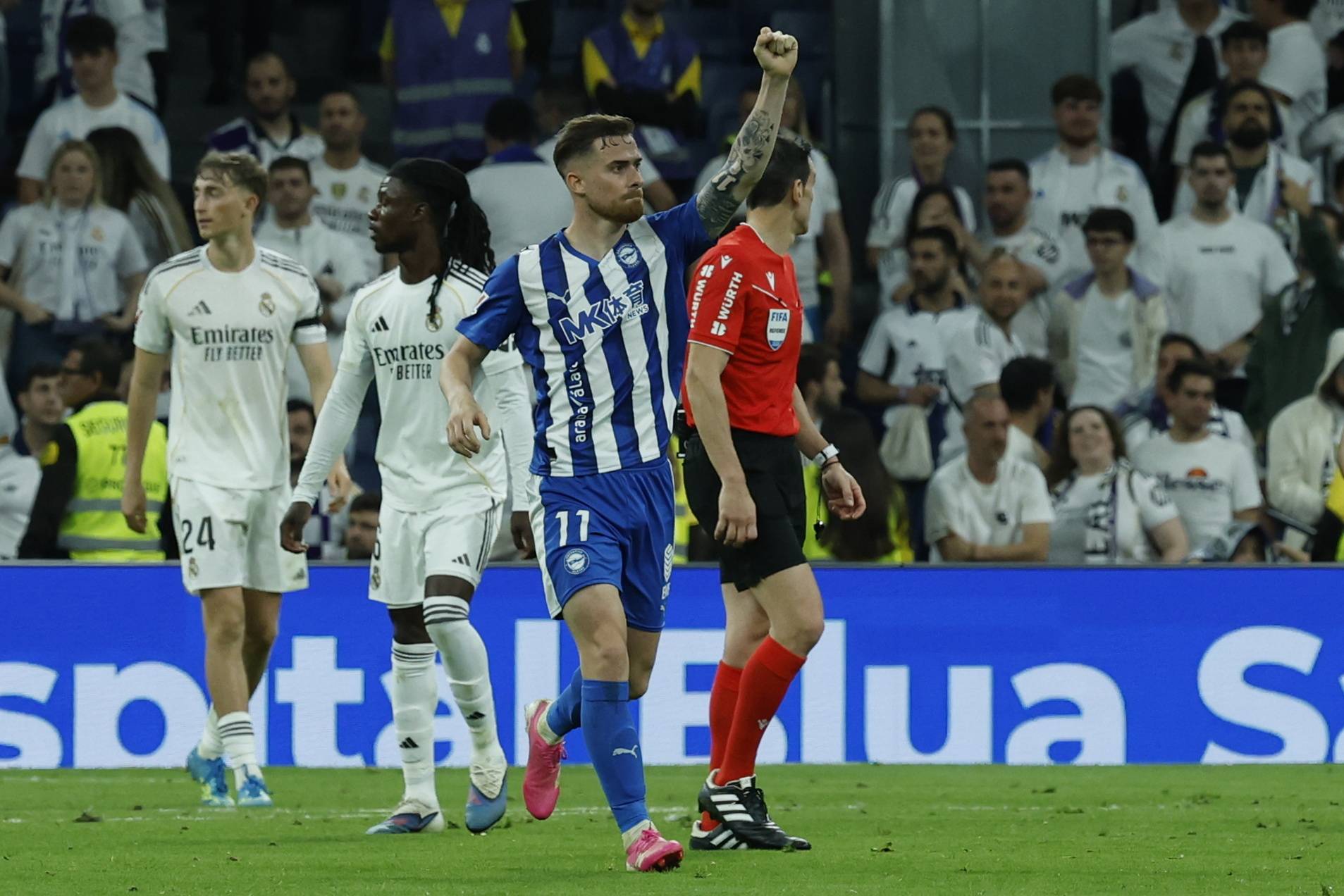 4月21日,在西班牙马德里进行的2025-2026赛季西甲联赛第33轮的一场比赛中,皇家马德里队主场2比1战胜阿拉维斯队。